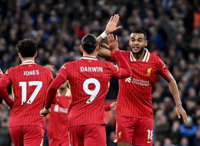 而与此同时,阿森纳已经在圣詹姆斯被击倒,曼城则在南海岸1球落后,第一集团要集体翻车?去年9月16日,曼城和利物浦都曾在上半时同以0比1落后,但最终均以3比1取胜各自对手西汉姆和狼队,但时隔13个半月,吹响反攻号角的只有红军。替补上场的戈麦斯首次触球,就是禁区内完全被放空的头球攻门,但角度太正被费布吕亨没收。5分钟后麦卡利斯特如法炮制,但荷兰人神勇依旧再度化解。此后范戴克近门包抄未果后,一直留在对方半场担任中锋;萨拉赫的挑射,距离越过费布吕亨也是咫尺之遥。尽管比分仍处落后,但利物浦已经将战火烧到了对手腹地。