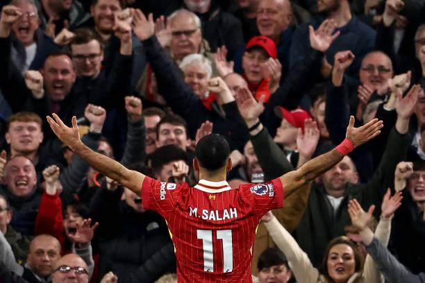 当斯洛特终于打出路易斯·迪亚斯这张底牌时,苦苦支撑了1个多小时的客队,终于顶不住了。第70分钟,此前一直存在感不大的哈克波左肋起传中,前中两点双方球员均未能顶到皮球,但被连续晃点的费布吕亨却罕见地出现了判断失误,皮球歪打正着砸进远端球网。这个意外丢球让布莱顿士气重挫,利物浦则乘胜追击,2分钟萨拉赫反击中晃开对手,果断兜射破网。相比于努涅斯“镜像复刻”错失领先,“正版”的发挥,才是比赛的关键。此球一进,萨拉赫对垒布莱顿参与进球达到16个(10球6助),仅次于对垒曼联;164个进球也使他超越“上帝”罗比·福勒,独占英超历史射手榜第8位。