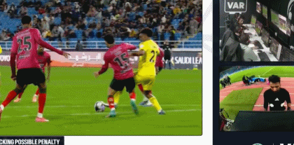 第79分钟,利雅得胜利选择换下C罗,叶海亚替补登场。第83分钟,科曼禁区内被拉拽倒地,裁判反复回看VAR回放,最终判罚点球。